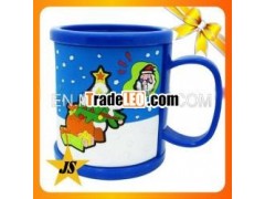 - The plastic mug wrapped with 2D or 3Ddesigned soft PVC material.